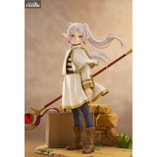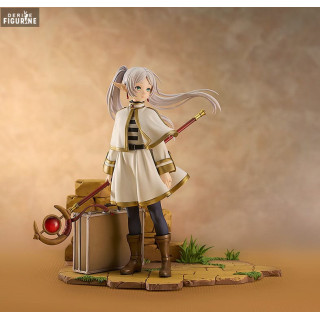Frieren, known for her long life and powerful control of magic, is depicted here in a graceful pose, holding her distinctive magic staff and a chest that suggests her endless travels and many adventures. The careful details of this figurine reveal the attention to detail that Good Smile Company went into recreating every element of its appearance.