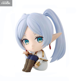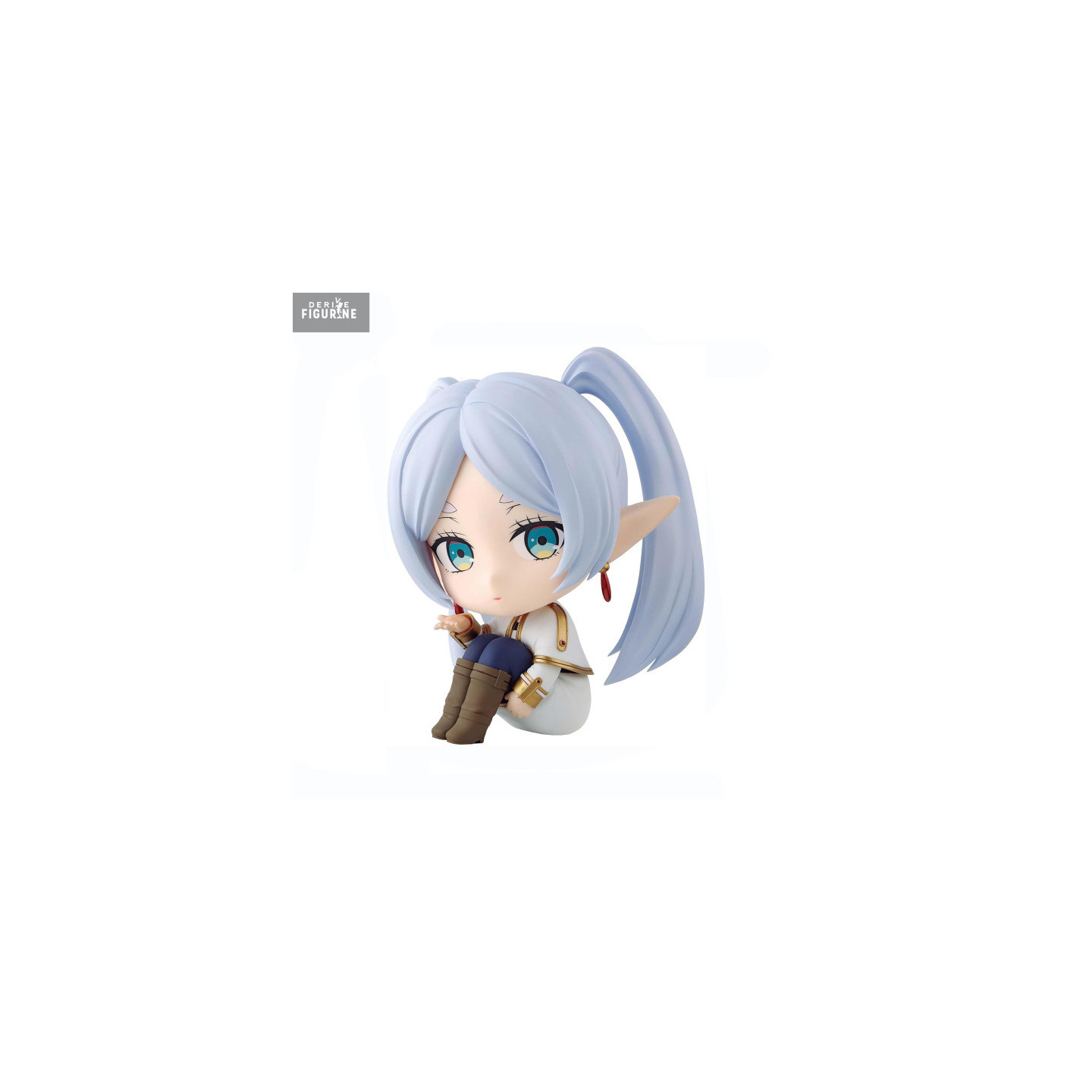 This PVC figure, produced by Banpresto, stands about 11 centimeters tall. It depicts Frieren in a seated posture, her knees drawn close to her, emphasizing her introspective nature. The delicacy of the details is visible in the sculpting of her long silver hair, gently falling around her shoulders, and in her facial expression, which is both soft and thoughtful. Frieren’s large elf ears are also faithfully represented, enhancing her unique appearance.