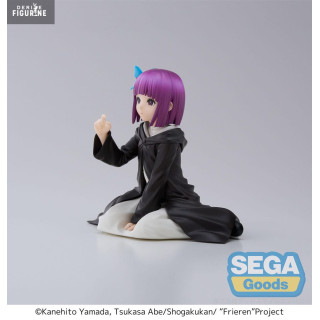 The figure depicts Fern in a seated and relaxed position, reflecting a peaceful scene where she appears deep in thought. Dressed in her signature black robe and adorned with a colorful blue and red ribbon in her hair, every detail of this figure highlights the precision of her design. Her short purple hair and calm, attentive expression perfectly capture her thoughtful and composed personality.