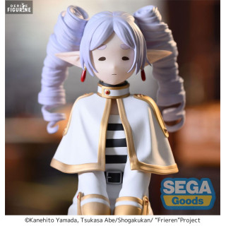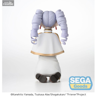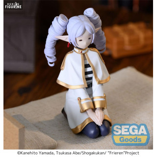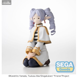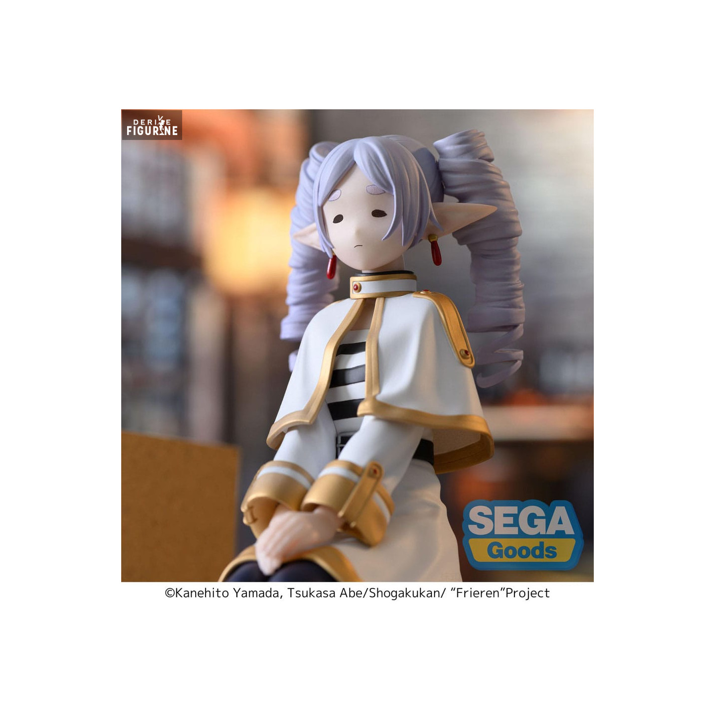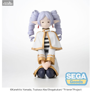 This figure, part of SEGA's PM Perching collection, stands approximately 18 centimeters tall and is crafted from PVC. It portrays Frieren in a seated position, hands clasped, dressed in her signature outfit trimmed with gold and styled with her elegant ringlets. The figure beautifully highlights Frieren's gentle and melancholic features, capturing her pensive expression and calm gaze, which reflect her reserved and contemplative nature. Designed with impressive detail, it’s a delightful collectible for Frieren fans, offering a tangible glimpse of this endearing and profound character.