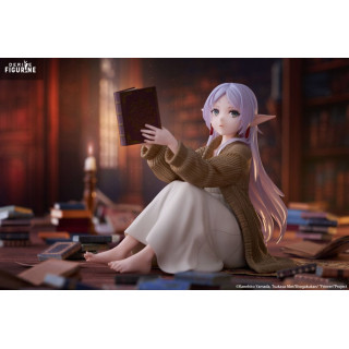 Her soft and dreamy expression, with delicately painted eyes, perfectly conveys Frieren's serene and thoughtful demeanor. This relaxed, almost intimate pose makes this figure a soothing representation of the character, ideal for decorating a desk or shelf.