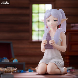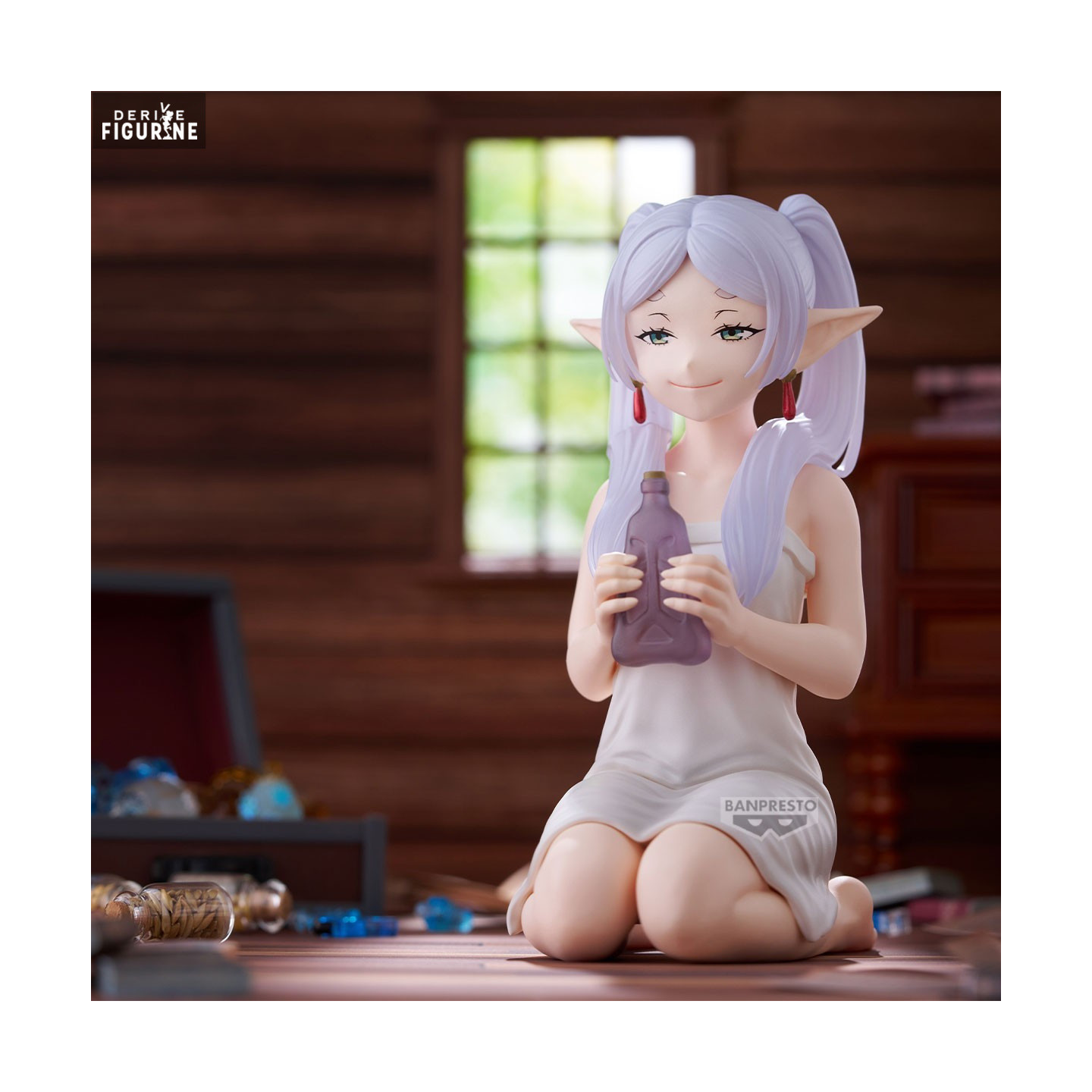 Official figure of Frieren in PVC which measures approximately 13 centimeters high. It is from the Relax Time collection. The manufacturer is Banpresto.