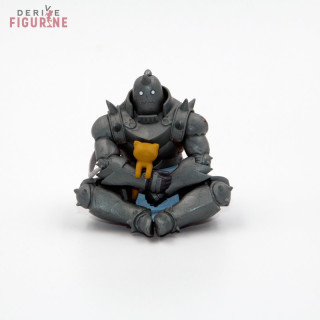Second hand and official Alphonse Elric Gashapon in PVC which measures about 5,5 centimeters high. Alphonse sits cross-legged with a little cat in his hands. He makes a funny head. This is a second hand item in perfect condition. The manufacturer is Bandai, sold without box.