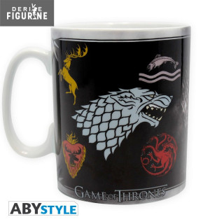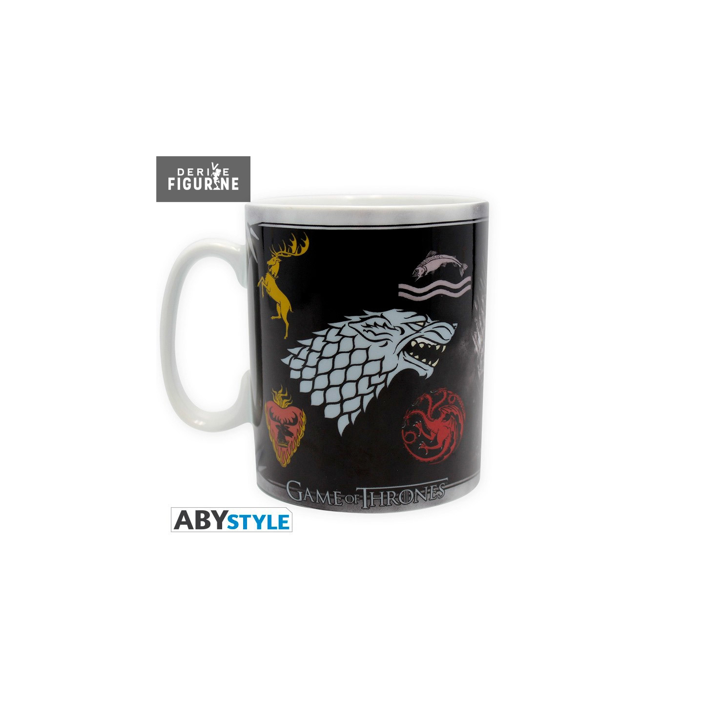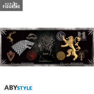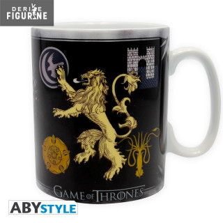 On this mug you have in the center the throne of iron, in addition to all the emblems of the houses. One sees among others the Lannister, the Stark, the Greyjoy or even the Baratheon. Enough to satisfy the majority of you.
