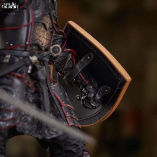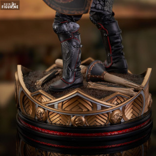 His piercing gaze and determined expression are faithfully reproduced, and his helmet, with its distinctive ornaments and red plume, is further proof of the high quality of this sculpture. The base on which it rests is decorated with motifs reminiscent of the rich decorations of Westeros, further reinforcing the impression of power that emanates from this figurine.