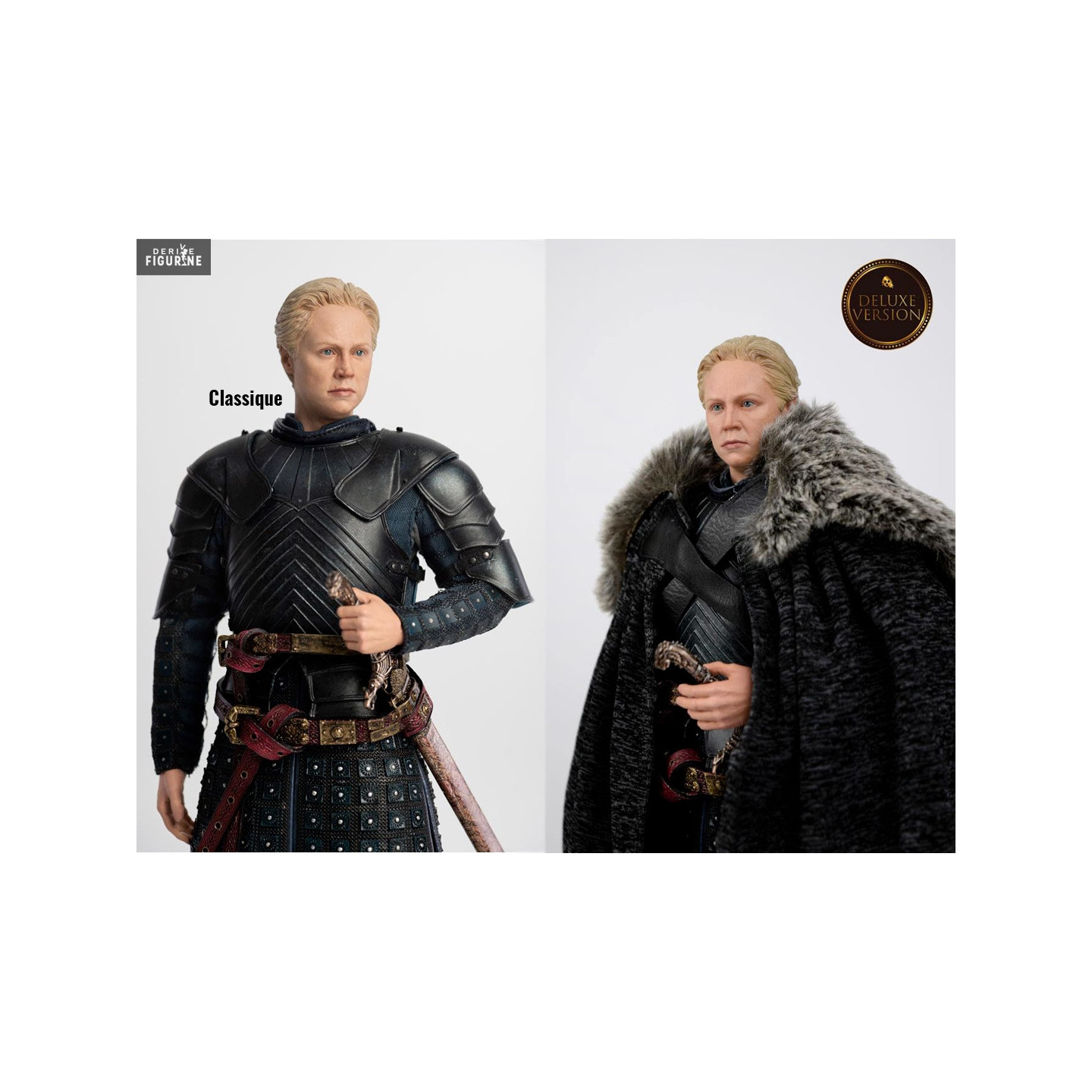 Brienne of Tarth (Torth in French) is a knight present in the Game of Thrones series. She intervenes in different seasons and her role is played by Gwendoline Christie whose features are recognized with this figurine. The classic version offers Brienne with its lot of accessories but the Deluxe version offers the elegant and imposing jacket of the character.