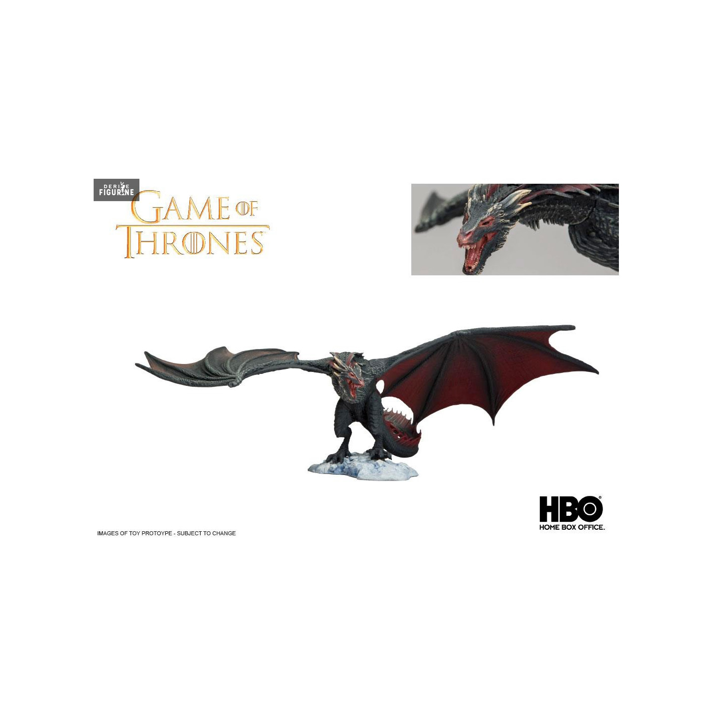 Official figure of Drogon measuring approximately 15x23 centimeters (wingspan 33 cm). The manufacturer is McFarlane Toys.