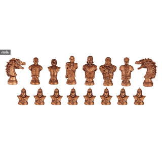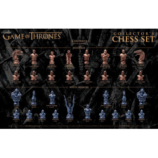 Chess game of Game of Thrones with 32 pieces in vinyl measuring approximately between 3 and 6 centimeters. The manufacturer is USAopoly.