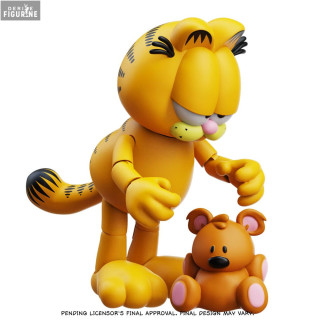 Produced by Boss Fight Studio, this 10-centimeter figure is a must-have for collectors and fans of the series. It includes several elements reminiscent of Garfield’s memorable moments, such as a tray of his favorite lasagna and his beloved teddy bear, Pooky. The figure is articulated, allowing for recreations of Garfield’s classic poses.