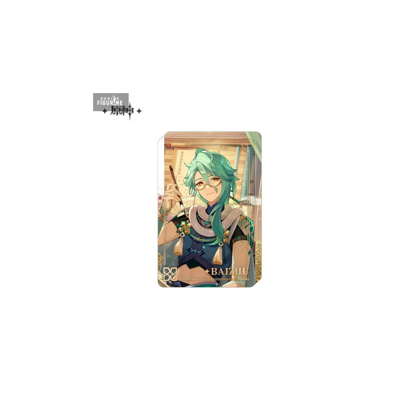 Official figure ornament with glitter of Baizhu in acrylic which measures approximately 10 centimeters high. The manufacturer is MiHoYo.