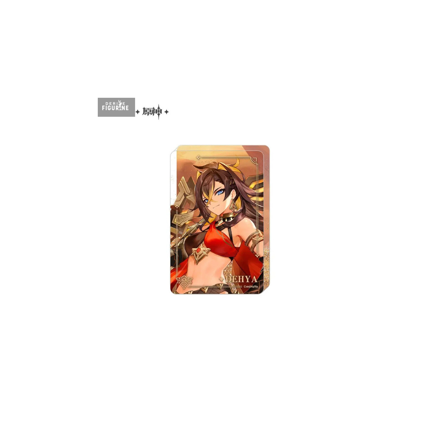 Printed on a rigid acrylic plate, the piece boasts a glossy finish and warm, vibrant colors. Perfect for display on a shelf or within a Genshin-themed collection, the design honors Dehya’s fierce yet graceful aesthetic.