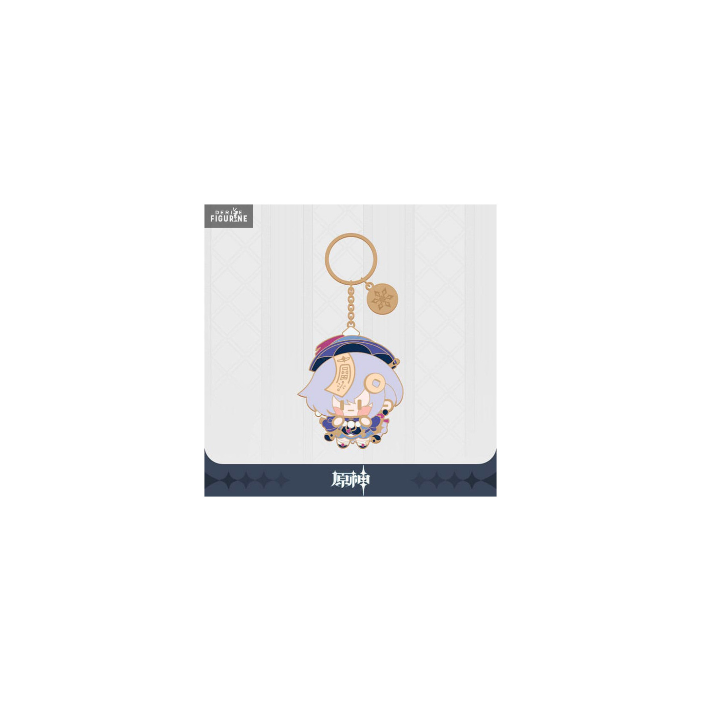 Official keyring of Qiqi in metal which measures approximately 5 centimeters high. The manufacturer is MiHoYo.