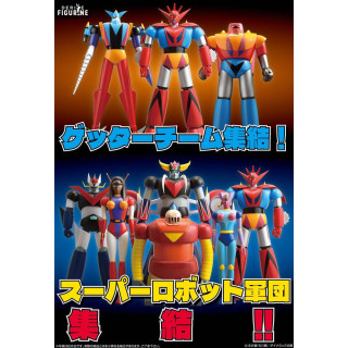 Manufactured by Evolution Toy, this PVC figure captures every intricate detail, from its towering stature to its piercing gaze. The striking red cape further enhances its heroic and dynamic appearance. With articulation and accessories that allow for recreating its iconic poses, this figure is a must-have for collectors and vintage mecha enthusiasts alike.