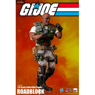 Official figure of Roadblock which measures approximately 30 centimeters high, scale 1/6. It is from the FigZero collection. The manufacturer is ThreeZero.