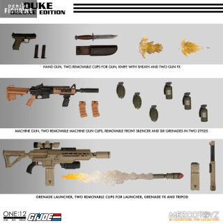 The Duke Deluxe Edition figure of "G.I. Joe" from the One:12 collection is an exceptional collector's item. Duke, whose real name is Conrad S. Hauser, is an iconic character in the G.I. Joe universe, and this figurine pays him a remarkable tribute. The figure features a wealth of details, articulated joints to allow for a variety of dynamic poses, and a multitude of accessories to customize Duke's appearance. His design is faithful to the character from the comics and animated series, with his recognizable military uniform and his determined look. Whether you're a longtime G.I. Joe fan or new to this iconic character, the Duke Deluxe Edition figure is a great addition to your collection. It captures the spirit of the G.I. Joe universe and offers plenty of opportunities to display it in unique ways.