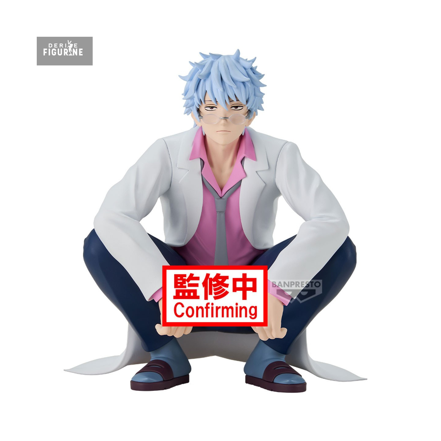 This Desktop Figure by Banpresto captures him mid-squat, lab coat flared open, pink shirt untucked, expression somewhere between “bored to death” and “thinking about pancakes.” It’s the exact energy of a man who might deliver a profound truth about shonen tropes—or fall asleep before he finishes.