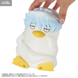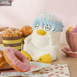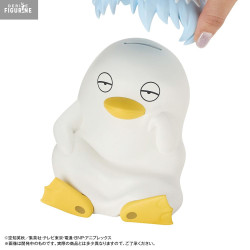 Details are neatly rendered: tousled blue hair, bright yellow beak and flippers, and a smooth matte texture. A discreet coin slot on the back allows it to function as a piggy bank—both a decorative and practical item for any Gintama fan.