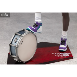 This official Subaru Awa figure, made of PVC, stands approximately 24 centimeters tall and is produced at a 1/7 scale. Created by the renowned manufacturer Kotobukiya, this piece captures Subaru in a dynamic and energetic pose, perfectly reflecting her role as the drummer in the musical project Girls Band Cry.