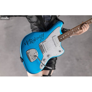 The Momoka Kawaragi figure perfectly captures the energy and charisma of this talented guitarist from Girls Band Cry, a world where characters convey their deep emotions through music. Momoka is an iconic figure in the series, known for her dynamic style and unwavering love for rock music. She stands out with her strong character and passion for the stage, traits evident in her appearance and charismatic presence. Her elegant black outfit and high boots give her a rebellious rocker look, while her bright blue guitar, marked with her autograph, showcases her dedication to her instrument of choice.