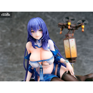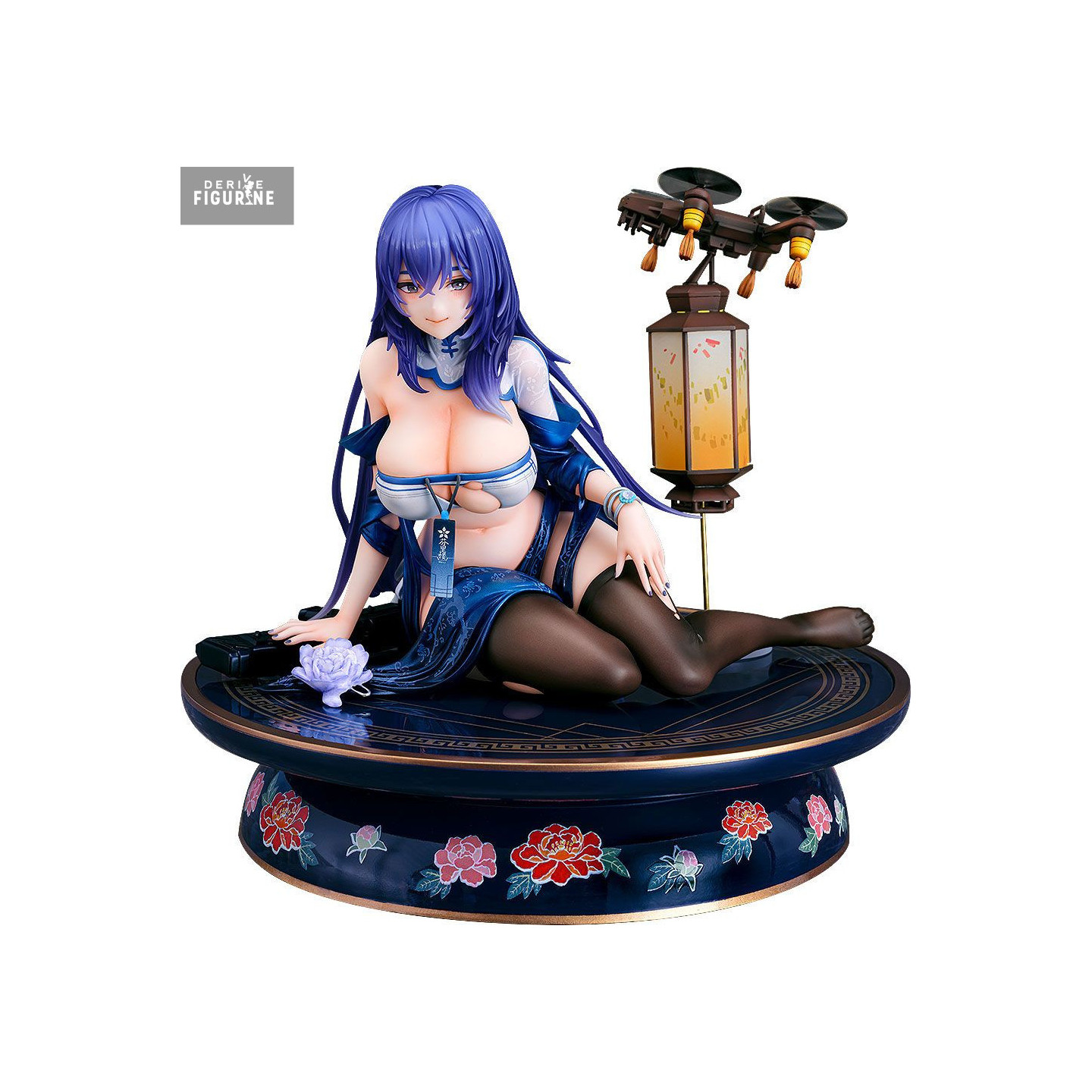 From Girls' Frontline, DP-12 radiates elegance and mysterious charm in this stunning "Echeveria Lantern" figure. Seated gracefully on a richly detailed floral-patterned base, clad in a deep blue outfit that subtly highlights her curves, she perfectly balances refinement, allure, and delicate grace. Her soft gaze, relaxed posture, and flowing ribbons amplify her captivating presence.