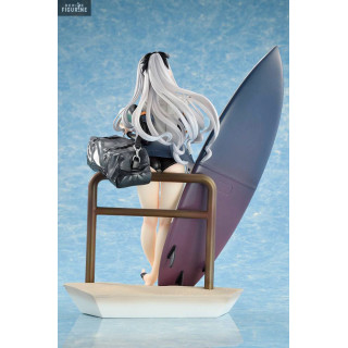 Originally, the Kalashnikov AK-12 is an assault rifle developed by Russia. Here you are instead facing a very beautiful woman and this is just the appearance of the AK-12 in the Girls Frontline mobile game. You can see she's having a bit of a good time with a surfboard, but with everything, she's enjoying a little ice cream. As you can see from one of the interchangeable faces, she froze her brain from eating it too fast.