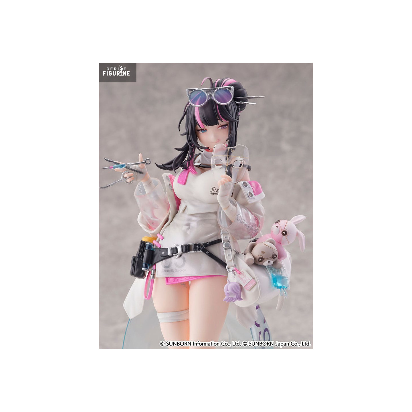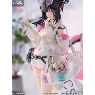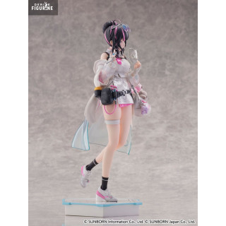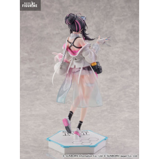 The bright color palette and contemporary style of the figure reflect the vibrant atmosphere of Shibuya, a district famous for its cutting-edge fashion and bustling ambiance. Vee's black hair, with distinctive pink streaks, is carefully sculpted to capture a fluid and natural movement, adding a dynamic touch to the piece. Additionally, the figure comes with a futuristic hexagonal base, adorned with geometric patterns reminiscent of the technological world of Neural Cloud.
