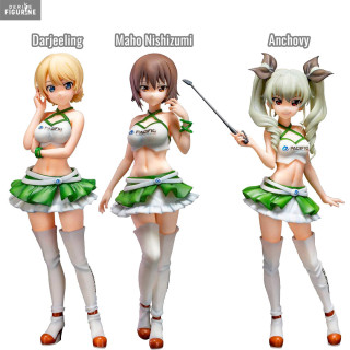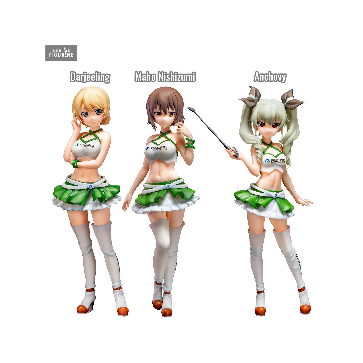 Three young women from Girls und Panzer der Film come to lend a hand to the team of the Pacific Racing team. So you have the choice between Anchovy, Darjeeling or Maho Nishizumi. So they wear high white boots and a green and white tank top and skirt set. Which one will you choose from the three?
