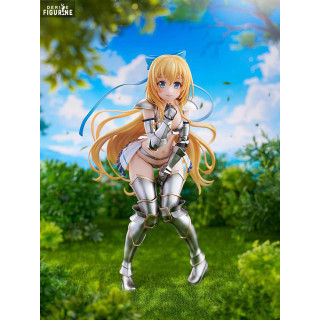 This Priestess - Bikini Armor figure, produced by Klockworx, reimagines the character in a light and stylish armor set that contrasts with her usual cleric role. Standing 21 cm tall at 1/7 scale, she wears a minimally designed warrior outfit, consisting of finely detailed silver armor pieces and a bikini that highlights her elegant appearance. Her delicate posture and soft expression add a charming sense of shyness, enhanced by her flowing golden hair adorned with a blue ribbon. This figure is a great addition for Goblin Slayer collectors or fans of alternative and bold designs.