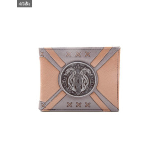 If you're a fan of God of War, you'll even be able to push the details right into your wallet. It is beige and gray and at its center is a medal with two snakes. Inside, you even have the inscription A new beginning on the compartment for coins.