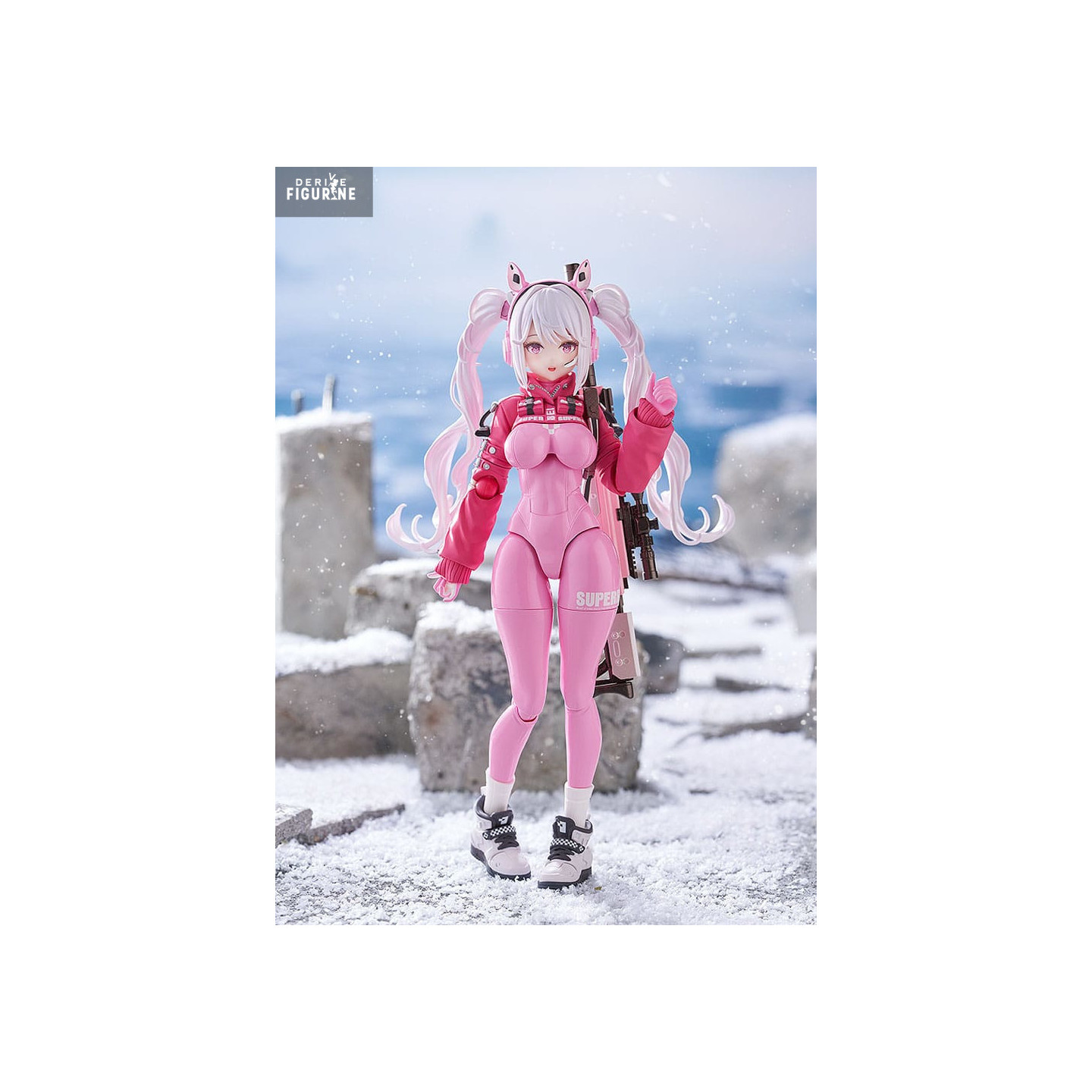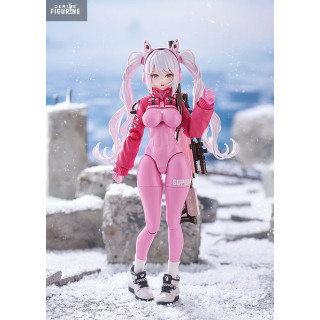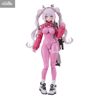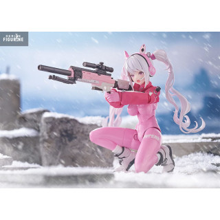 Alice, one of the key characters from Goddess of Victory: Nikke, is depicted here in a dynamic pose, perfectly capturing her charisma and energy in battle. Dressed in pink tactical gear that highlights her figure, she embodies both strength and femininity, making her an iconic character in the game. Her outfit, marked by vibrant shades of pink, is realistically accessorized with straps, pockets and protections, adding an impressive dimension of realism to the figure.