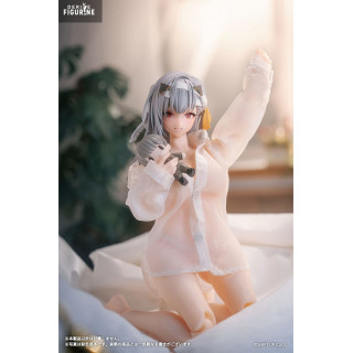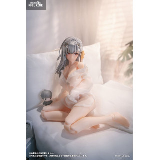 The First Affection figure of Modernia captures a unique moment of vulnerability and charm. She is depicted in a delicate pose, wearing a finely detailed sheer blouse that showcases the intricate craftsmanship. The included accessories, such as her imposing weapon and alternate face plates, allow collectors to recreate iconic scenes from the game. Despite its compact 1/12 scale, this figure retains an impressive level of detail, making it a must-have piece for collectors.