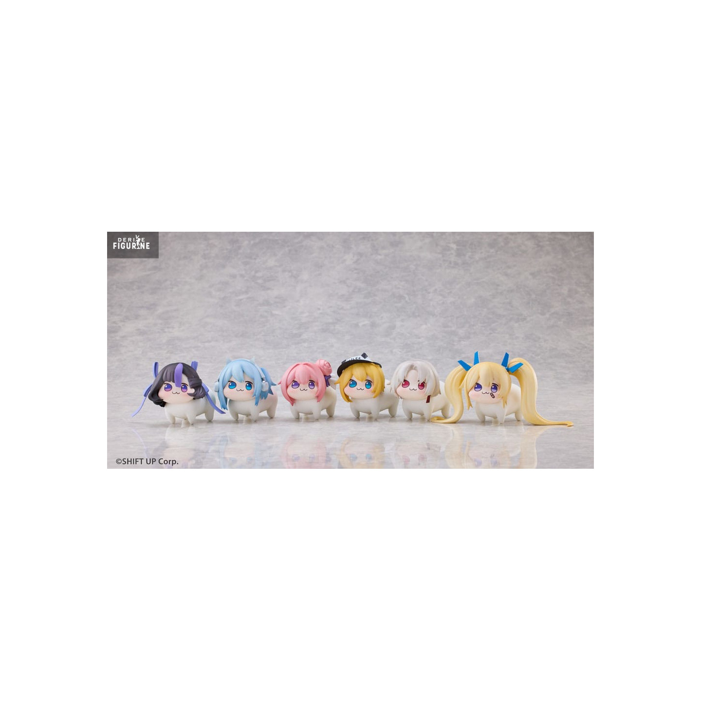 Official figures of Goddess of Victory: Nikke in PVC which measure approximately 6,5 centimeters high. They are from the SAC Series Doro collection. The manufacturer is Hobby Sakura.