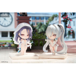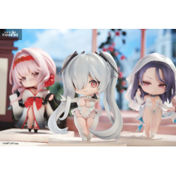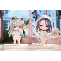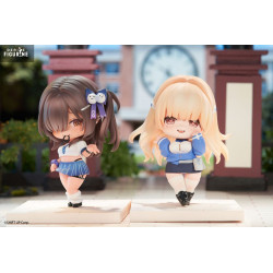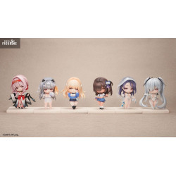 The lineup features several iconic characters, each sculpted in a super-deformed chibi style, with oversized heads and exaggerated features that highlight their cuteness. Their dynamic poses and faithfully recreated outfits reflect their in-game designs while adding a playful twist.