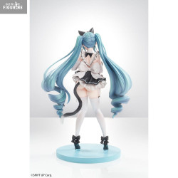 Details include a cat-ear headband, black and white maid dress with apron, long gloves, garters, cat tail, and heels with ribbon accents. From the fabric folds to the miniature bows and accessory textures, the figure showcases strong craftsmanship and a confidently executed “maid catgirl” aesthetic.