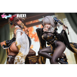 In Goddess of Victory: Nikke, Noir and Blanc are a tightly linked pair of Nikkes fighting side by side against the Raptures in a ruined world. This 1/4 scale PVC set by Stargazer brings both sisters together in one scene, reaching up to about 48 cm in height including the base. Noir in her black-and-gold kimono and Blanc in a mix of black and white outfits are posed around elegant furniture, as if you caught them during a private moment away from the battlefield.