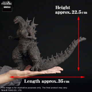 This figure, from the Daikaiju Series by X-Plus, meticulously recreates every detail of this legendary creature. Measuring approximately 23 cm in height and 35 cm in length, this imposing PVC piece perfectly captures Godzilla's massive and fearsome appearance. The texture of his skin, sharp scales, and distinctive dorsal spikes are finely sculpted to offer stunning realism, reminiscent of the epic scenes where the kaiju stomps through cities or battles other titanic creatures.
