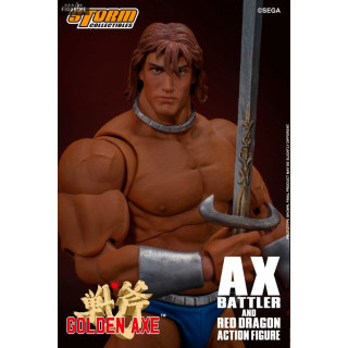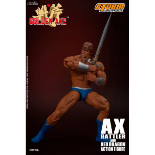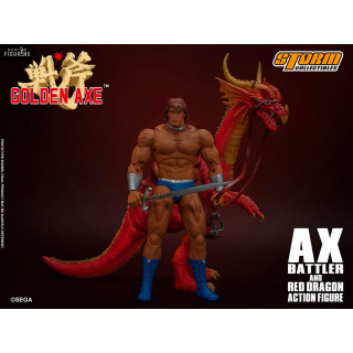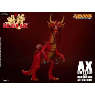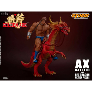 Golden Ax is a hack video game in slash and here is a figurine of one of the playable characters namely the Ax Battler. Specialized in strength, he fights with a two-handed sword but is also able to use the magic of the Earth. The hero is accompanied by a figurine of his mount which is a red dragon. It is possible to take control of a mounted dragon by dispossessing the enemies of the latter.