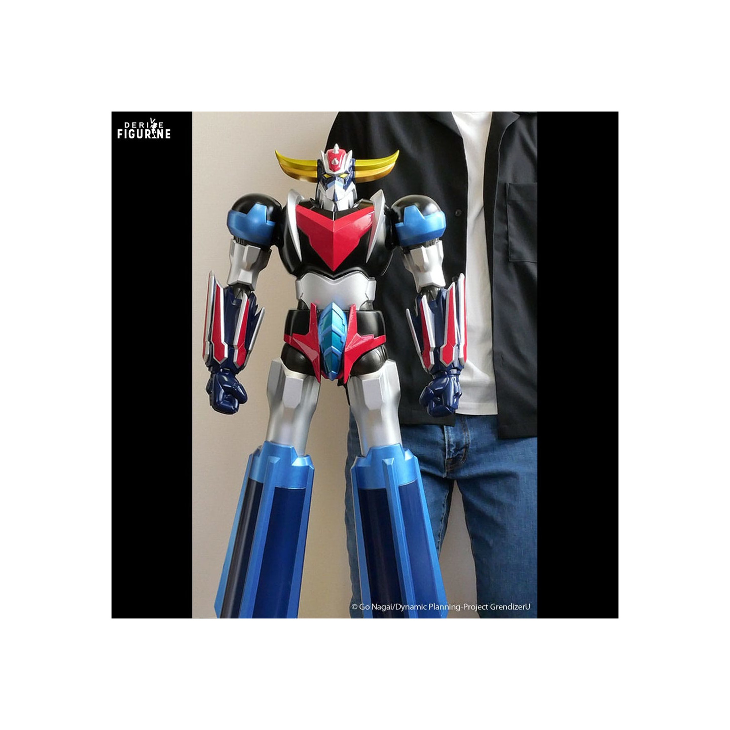 This impressive figurine measures approximately 67 centimeters tall, making it a truly "jumbo" piece. Made of vinyl, it benefits from detailed finishes and robustness which ensure its longevity. Grendizer U is depicted in all its glory, with its vibrant colors and distinctive design that will delight fans of the series.