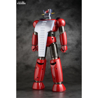 This impressive Energer Z figure, from Evolution Toy's Grand Action Bigsize Model series, presents the original concept of Mazinger Z in a new light. With an imposing stature of 40 cm in height, this representation of the Energer Z stands out for its rich finish and fluid joints, allowing a multitude of heroic poses. The design is completed by a Pilder, a special motorcycle that serves as a cockpit and can be mounted on the back of the figure. Every articulation of the figure is designed for maximum flexibility, including telescoping joints to expand the range of possible movements, going beyond what can be expected from large-scale figures. In addition to its dominant silhouette, this figure features die-cast parts in areas subject to increased stress, ensuring greater durability and stability.