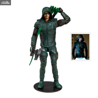 Official figure of Green Arrow which measures about 18 centimeters high. The manufacturer is McFarlane Toys.