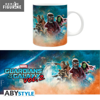 Here is a nice mug with almost all the heroes of the Guardians of the galaxy. One finds then Groot on the shoulder of Drax, Raccoon, Star-Lord and finally Gamora.
