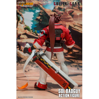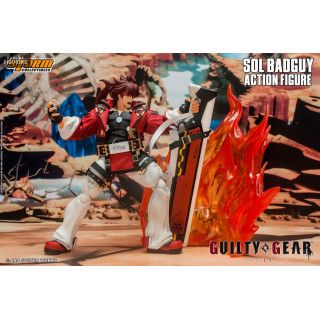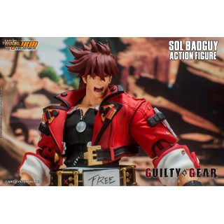 Official figure of Sol Badguy which measures approximately 18 centimeters high, scale 1/12. The manufacturer is Storm Collectibles.