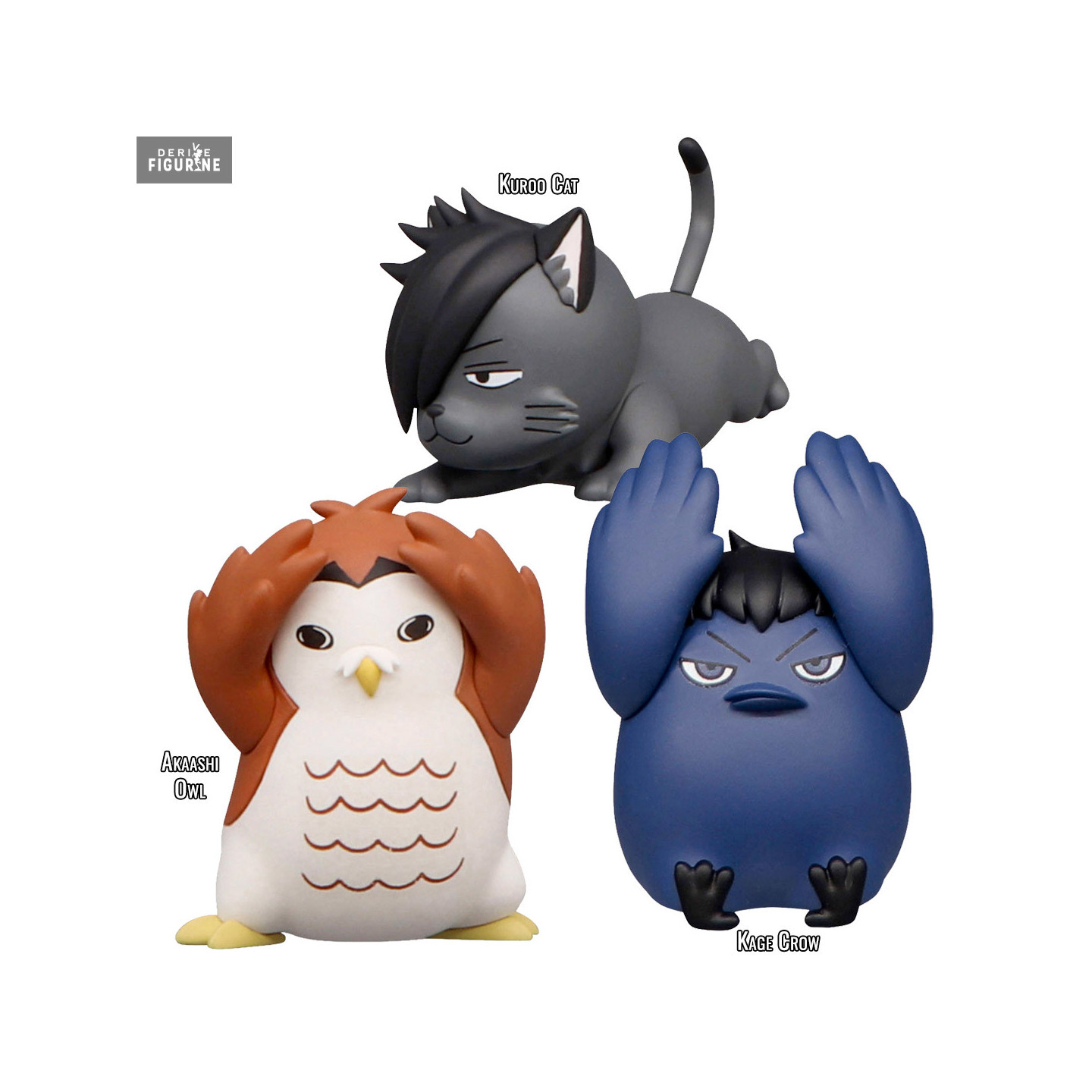 Official figure of your choice of Kuroo Cat (5 cm), Kage Crow (7 cm) or Akaashi Owl (7 cm) in PVC. It is from the Noodle Stopper Petit collection. The manufacturer is FuRyu.