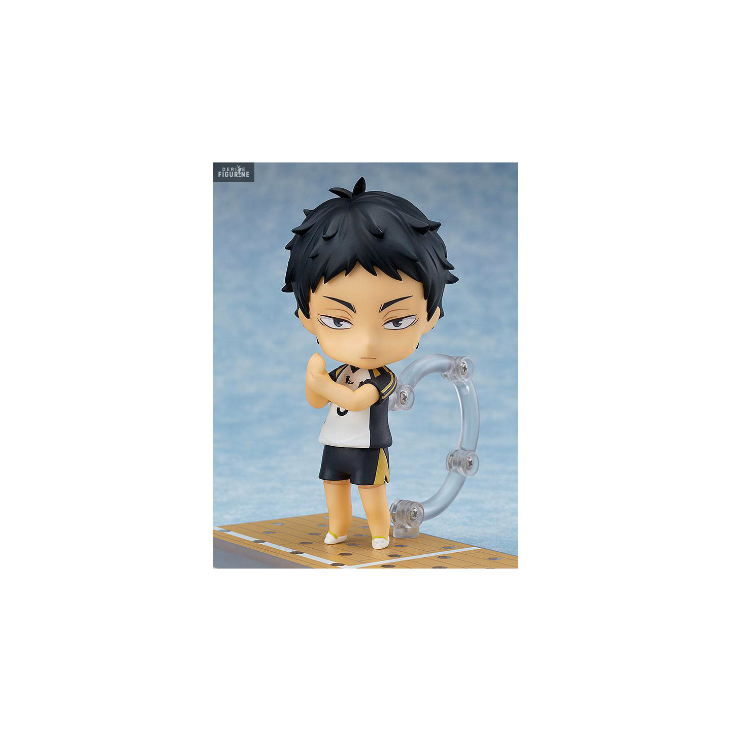 Keiji is dressed in his black and white Fukurodani team uniform, carefully detailed to reflect his anime appearance. The figure includes several interchangeable accessories and facial expressions, allowing you to recreate iconic scenes or highlight his most memorable moments on the court. His default pose, with arms crossed and a focused gaze, perfectly illustrates his role as the team's strategist. The included base, shaped like a gymnasium floor, adds a realistic and immersive touch to the display.