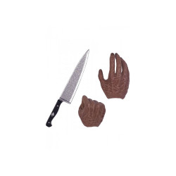 The outfit is captured with understated but effective detail. The dark blue work jumpsuit closes up to the collar and features chest pockets and realistically hanging legs over black shoes. His pale mask has rigid, expressionless features and deep eye sockets, topped with slicked-back brown hair. The figure comes with a large metallic kitchen knife and interchangeable hands, including an open hand and a clenched fist, so you can adjust how Michael grips his weapon. He stands on his own in a neutral pose, making him perfect for recreating the ominous atmosphere of Halloween 4 at the center of your horror collection.