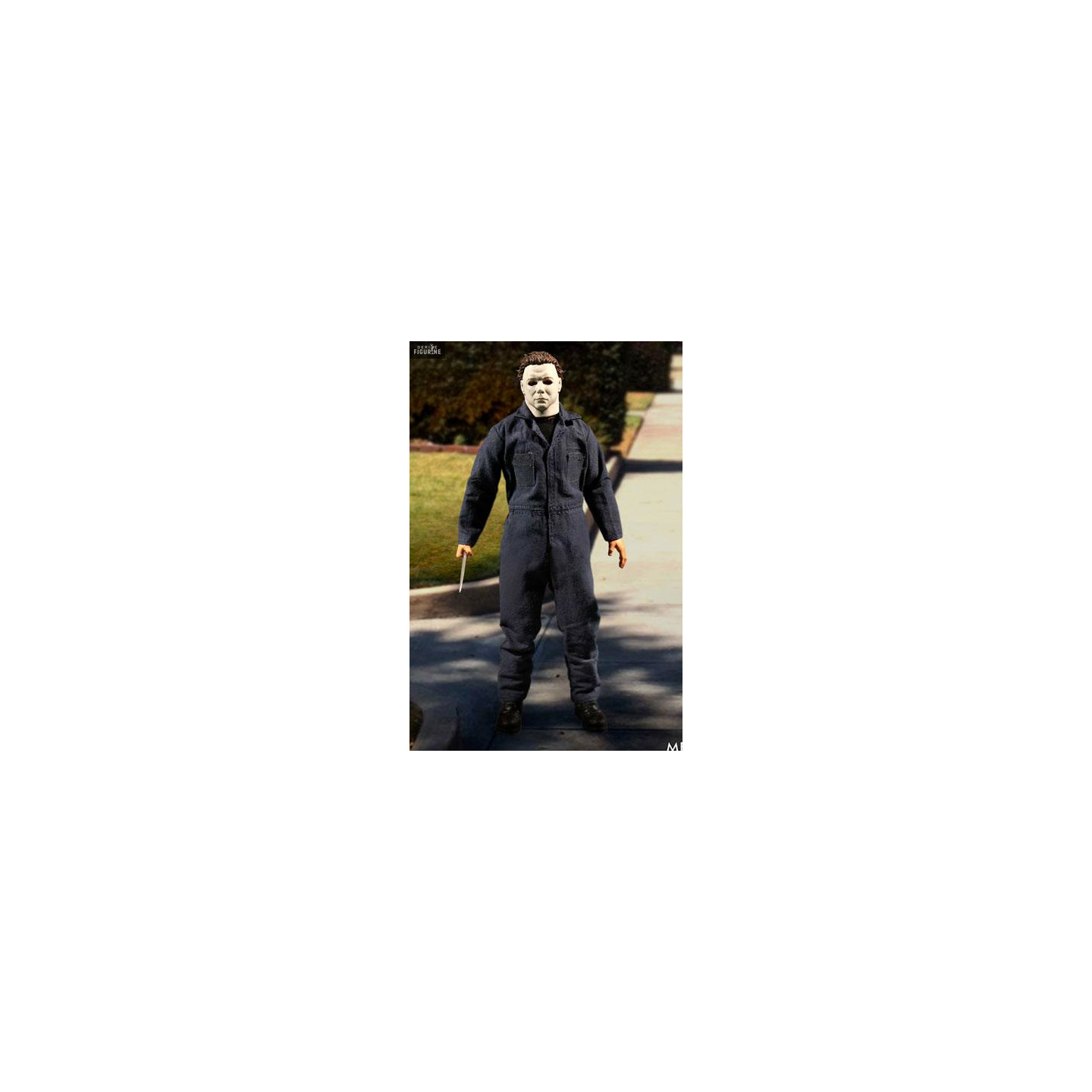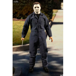 Here is an articulated figurine of Michael Myers, the killer of Halloween movies. It has many accessories like several pairs of hands, two knives including a bloody, a tombstone, a base and even a lantern shaped pumpkin.