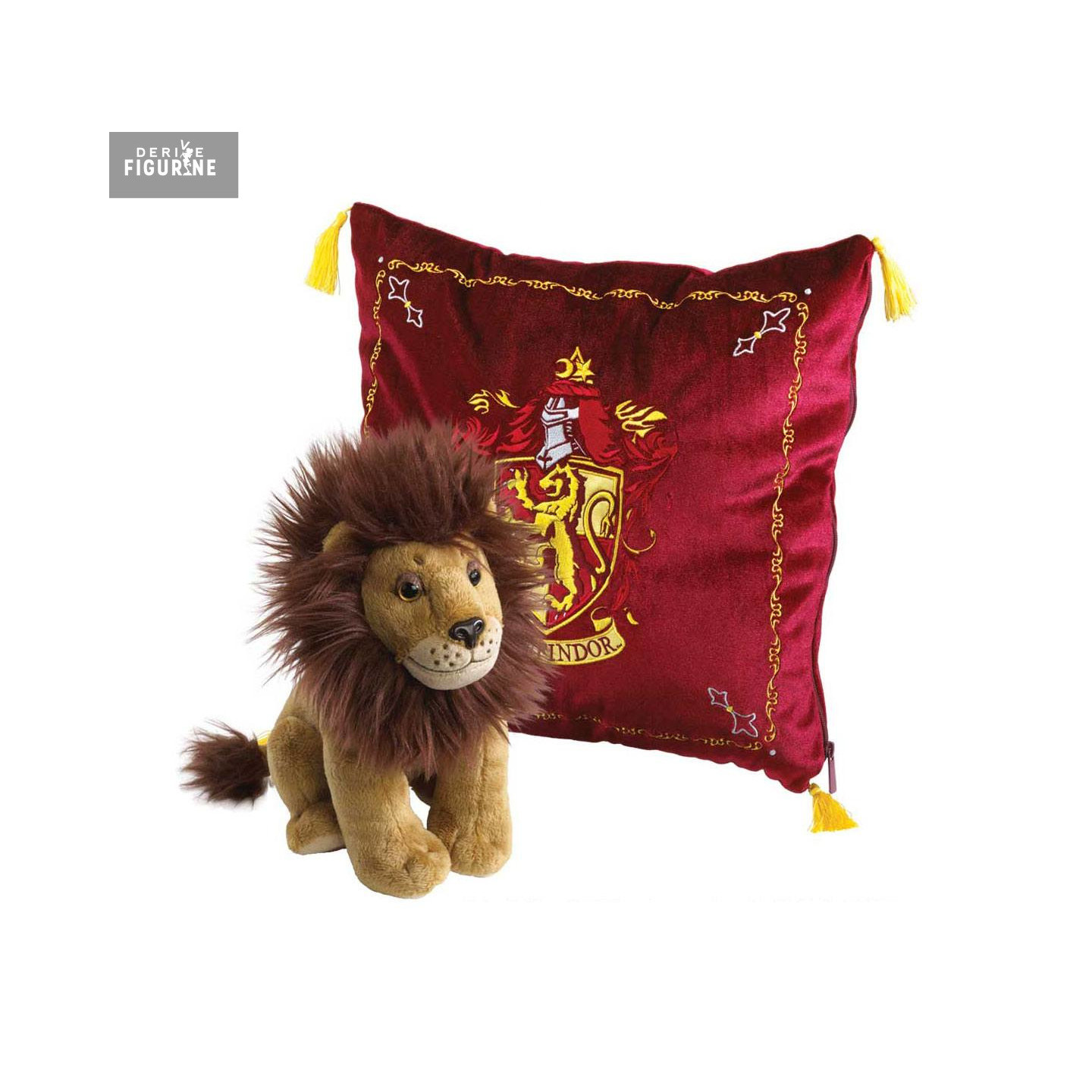 Official plush (~ 25 cm) + cushion (~ 34 x 34 cm) of Gryffindor in 100% polyester. The manufacturer is Noble Collection.