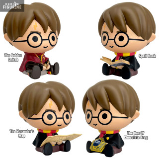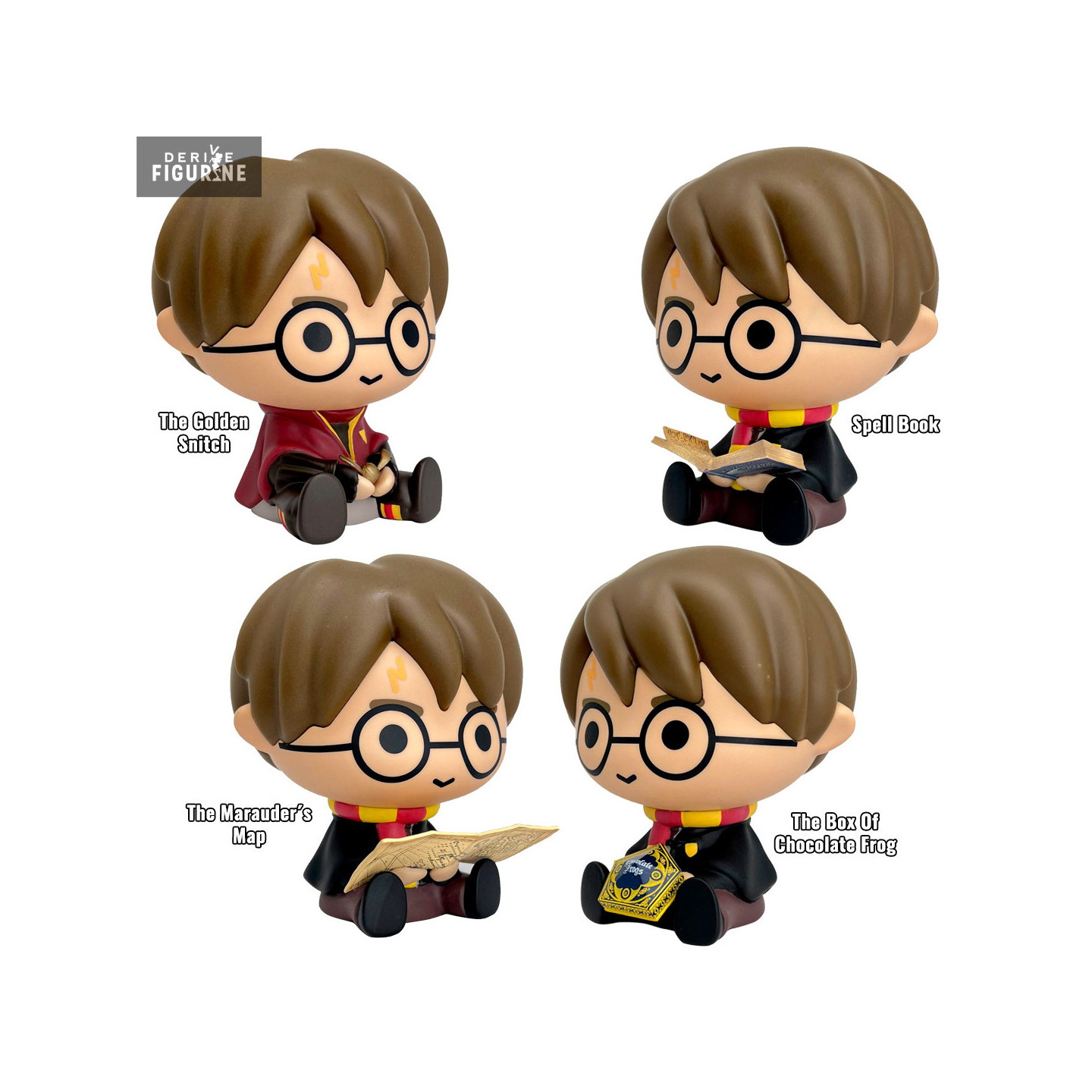 Our little sorcerer's apprentice has pulled out all the stops to come to you, since he offers you no less than four different versions for these little figurines, which also serve as a piggy bank. You can therefore see him with a book of incantations (Spell Book), with the Golden Snitch in his hands, with a box of delicious Chocolate Frog or finally with the Marauder's Map.