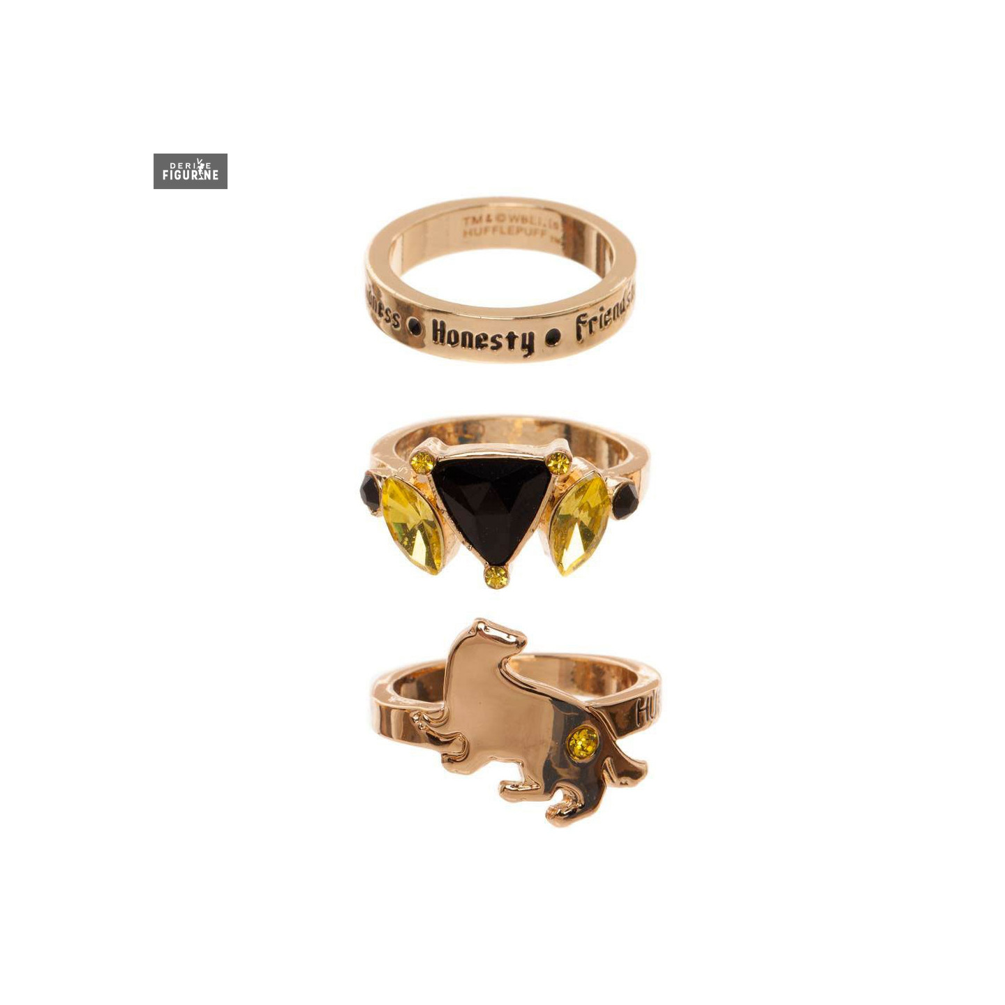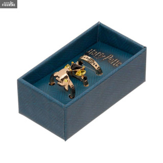 Here is a pack of three Hufflepuff colored rings. The first takes some of the characteristics needed to enter this house, such as sincerity or loyalty. The second has Hufflepuff's iconic colored stones while the latter represents a badger. Everything is sold in a gift box.