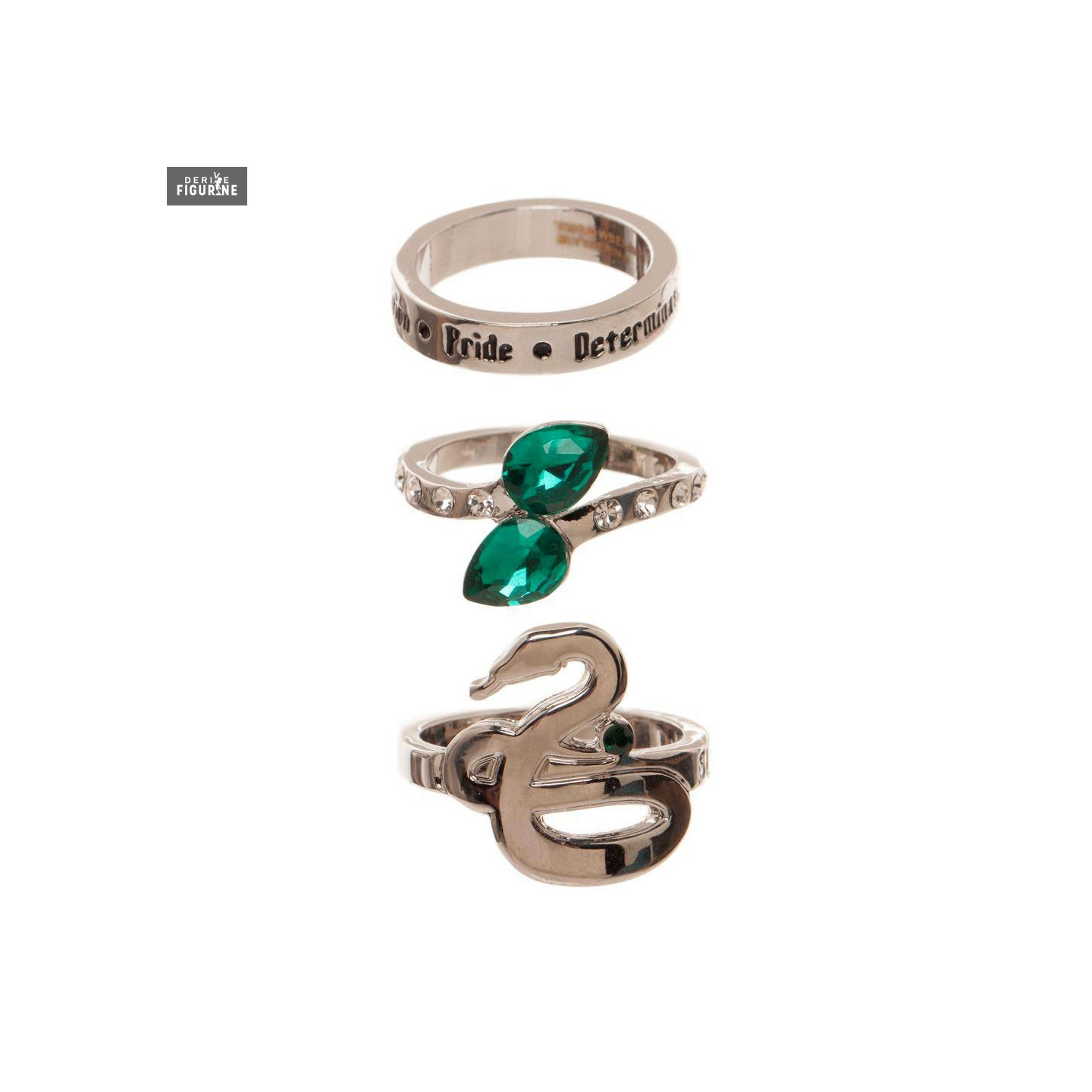 Slytherin rings in stainless steel. Sizes: 6, 7 and 8. The manufacturer is Bioworld.